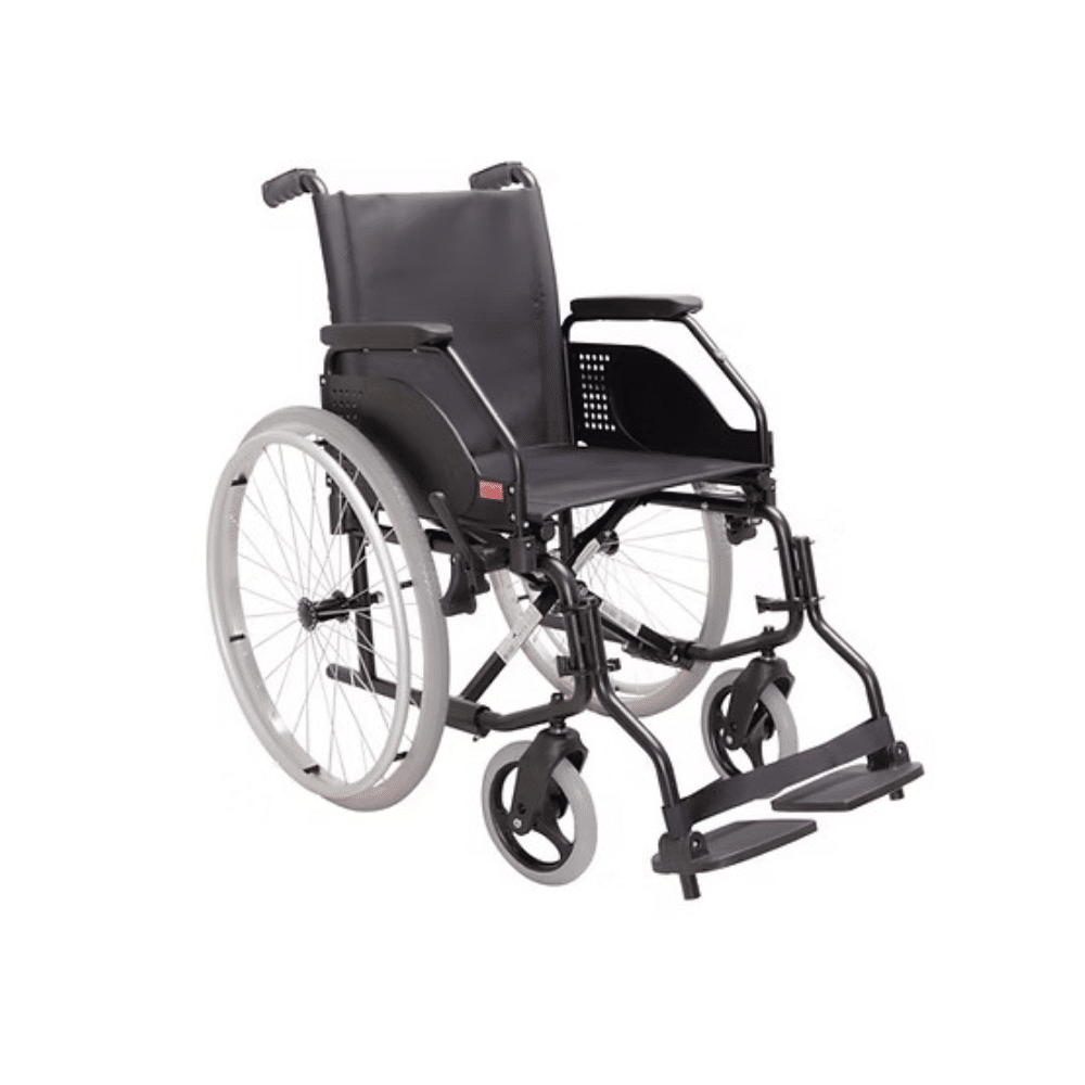 Apresentamos a cadeira de rodas manual de aço, perfeita para quem procura qualidade e estilo. Ideal para utilizadores com mobilidade reduzida, a sua estrutura robusta (com cruzeta tripla) e design atrativo facilitam o armazenamento. Os apoia pés destacáveis, rebatíveis e ajustáveis em altura, juntamente com os apoia braços rebatíveis, garantem conforto e praticidade. As rodas traseiras de 600 mm, com aro de alumínio e extração rápida, estão disponíveis em versões pneumáticas ou maciças, com jantes em nylon ou raiadas. As rodas dianteiras de 200 mm são maciças, com a opção pneumática de 200×50 mm para maior conforto.