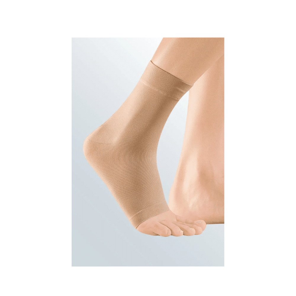 Auxiliar de extensão dupla para o tornozelo numa compressão média com calcanhar equipado.